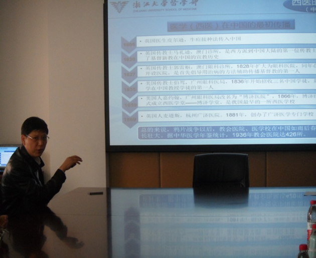 2013年11月23日下午,医学院文化宣讲队的医学院院史培训在医学综合楼顺利举行。本次培训由医学院党委副书记陈国忠主讲。在陈书记的带领下,同学们走入历史,重温了医学院在过去百年中的风风雨雨。